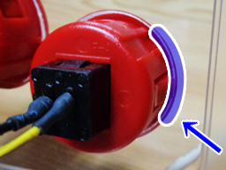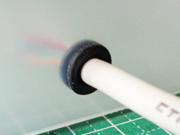 接続ケーブルの穴には、たまたま余っていたPCファン用の防振ゴムをグロメット代わりとして使用(グロメットはホームセンターで売っている)。